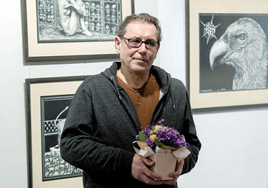 Gerardas Raitas Šatūnas atidarant savo kūrybos parodą