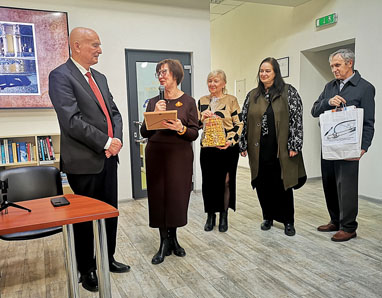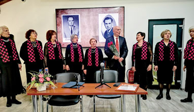 Kovo 5-ąją gyd. Joną Valskį garbingo jubiliejaus proga sveikino TAU vokalinis ansamblis Vakarėjant, Viešosios bibliotekos vedėja Laima Žėkienė, Druskininkų III amžiaus universiteto atstovai