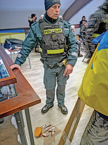 Prie Druskininkų viešosios bibliotekos įėjimo protestuotojų laikoma juosta su užrašu Konstitucija buvo aušriečių perplėšta įeinant į biblioteką, o treninguotas Nemuno aušros gerbėjas juostą sviedė į protestuotoją, apsigobusį Ukrainos vėliava, ir nusikeikė necenzūriniais žodžiais: chohole tu job**as.