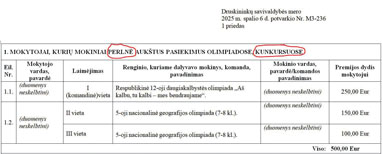 Praėjusią savaitę Druskonį pasiekė skaitytojo komentaras, siūlantis paskaityti spalio 6 d. R.Malinausko pasirašytą potvarkį Dėl premijų Druskininkų savivaldybės mokyklose dirbantiems darbuotojams skyrimo. Šio potvarkio 1 priedo pirmos lentelės pavadinime šviečia dvi grubios rašybos klaidos: MOKYTOJAI, KURIŲ MOKINIAI PERLNĖ AUKŠTUS PASIEKIMUS OLIMPIADOSE, KUNKURSUOSE. Jei viešai paskelbiami tokie raštai, ar R.Malinauskas bent permeta akimis savo potvarkius ir jų priedus, kuriuos jis pasirašinėja? Ką tuomet veikia jo komanda, ruošianti tuos dokumentus?- stebėjosi komentarą Druskoniui atsiuntęs druskininkietis. Minėtame potvarkyje rašoma, kad, atsižvelgiant į Druskininkų sporto centro, M.K. Čiurlionio meno mokyklos, Ryto gimnazijos, lopšelio-darželio Žibutė, Atgimimo mokyklos, Leipalingio ir Viečiūnų progimnazijų, Saulės pagrindinės mokyklos bei lopšelio-darželio Bitutė rekomendacinius raštus, šio potvarkio prieduose nurodytiems savivaldybės mokytojams yra skiriamos piniginės premijos. Jomis iš viso įvertinta 19 asmenų. Didžiausia suma 2 tūkst. eur premija pagal šio potvarkio 3-ąjį priedą skirta Druskininkų savivaldybės metų mokytojui. Vienuolika savivaldybės mokytojų gavo 200 eur premijas už praėjusių mokslo metų pasiekimus. Premijomis įvertinti ir Sporto centro treneriai. Vieną didesnių įvertinimų 900 eur premiją gavo treneris už auklėtinių pergalę -1-ąją vietą 2025 m. Lietuvos jaunimo U15 (gim. 2010 m.) salės futbolo čempionate.