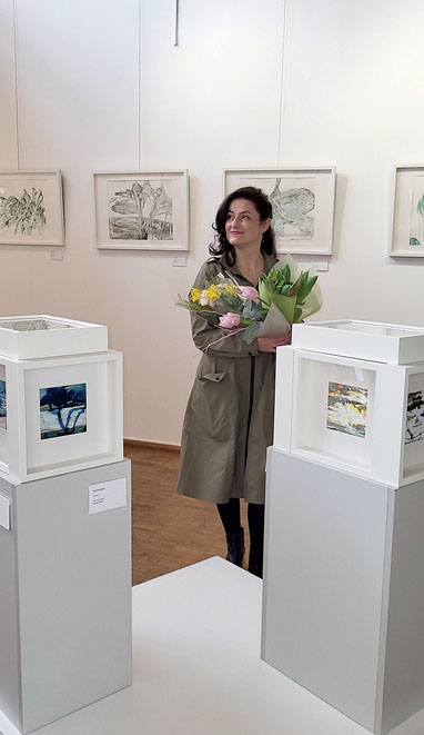 Labai smagu ir dėl to, kad tenka pristatyti menininkę, gyvenančią Druskininkuose, kas pastaruoju metu nedažnai pasitaiko galerijos erdvėse dominuoja kitų šalies vietovių ir užsienio dailininkų kūryba. Nors Alės Kalėdienės darbuose nėra tiesioginių šio miesto vaizdų, bet atrandame kai ką naujo, ko mieste nepamatome. Pripažinkime įkvėpimas ateina iš tos aplinkos, kuri menininką supa, lokali vieta kūrybai turi didelę reikšmę ir įtaką. Daugelis pažįsta parodos autorę dailininkę, dizainerę, pedagogę Alę Kalėdienę. Kai mokiausi Druskininkų Mikalojaus Konstantino Čiurlionio meno mokykloje, teko lankyti šios mokytojos pamokas. Alė Kalėdienė yra ne tik pedagogė, ji Mokytoja iš didžiosios raidės, jos išmintis pravers dar ir kitoms kartoms. Mokytoja visada aktyviai kuria ir turi ką parodyti. Visi, kurie jau spėjo apžvelgti šią parodą, įsitikino, kad prie kiekvieno kūrinio verta sustoti ir ilgiau pažiūrėti. Kuo ilgiau į kūrinį žiūri, tuo aiškiau pajunti, kad jo paviršius kinta ir transformuojasi. Tai priklauso dargi nuo nuotaikos. Todėl verta prie šių kūrinių sugrįžti iš naujo ir pamatyti juos vis kitaip. Viena iš autorės bičiulių, išvakarėse padėjusi išdėstyti ekspoziciją, yra pastebėjusi: nors prie paveikslo sustoji fiziškai, bet mintys negali sustoti jos vyte veja viena kitą. Taip pat išgirdau komentarų, kad šiuose paveiksluose abstrakčios formos liejasi tarsi vanduo, įžvalgomis dalijosi parodos kuratorė.